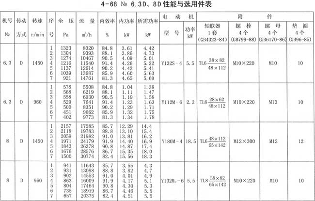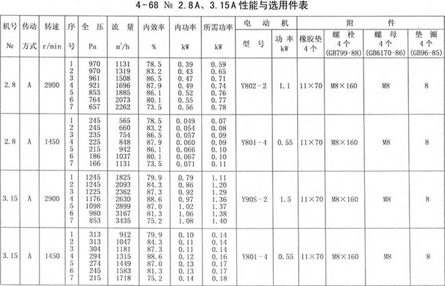4、周口4-68離心風機性能與選用件表